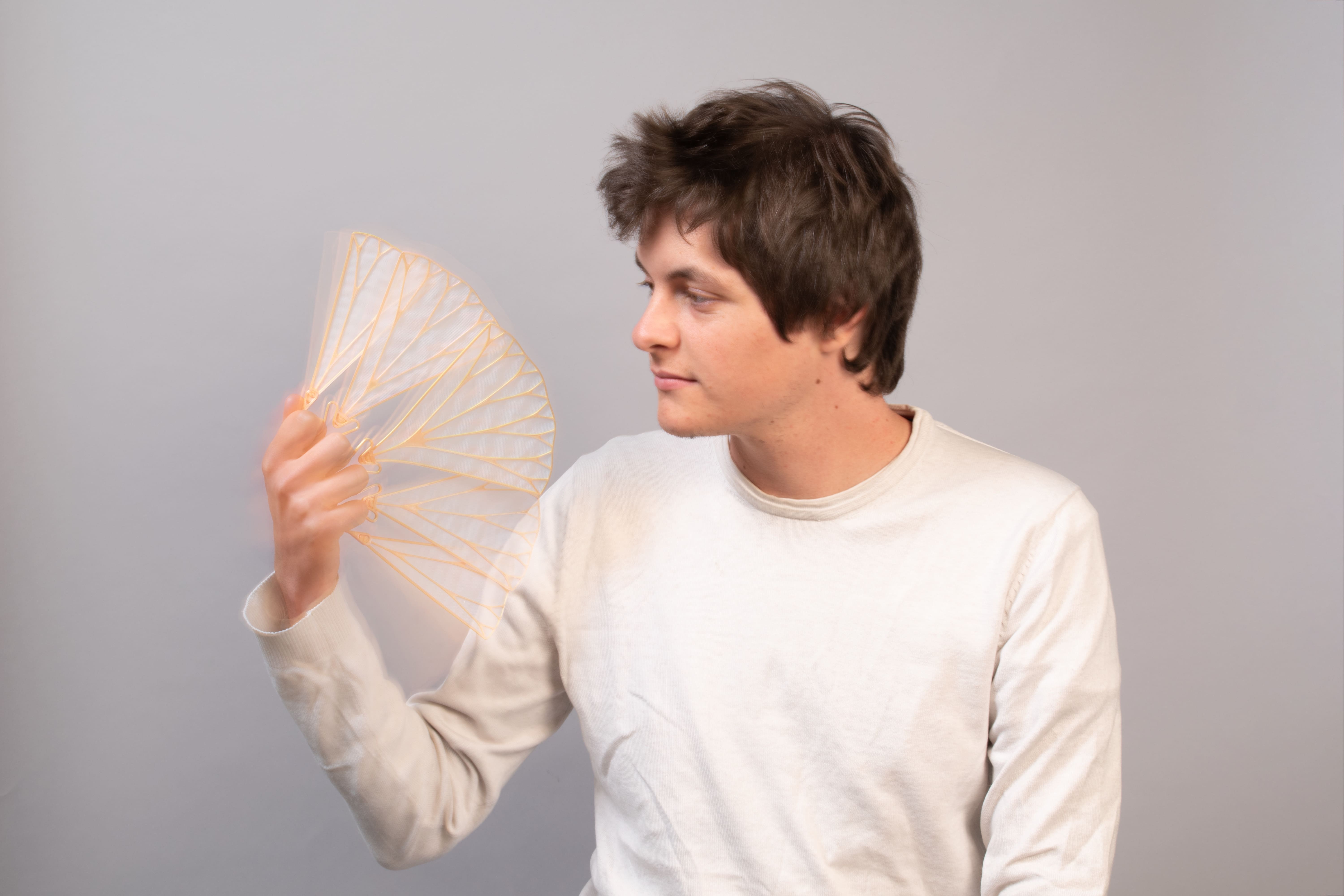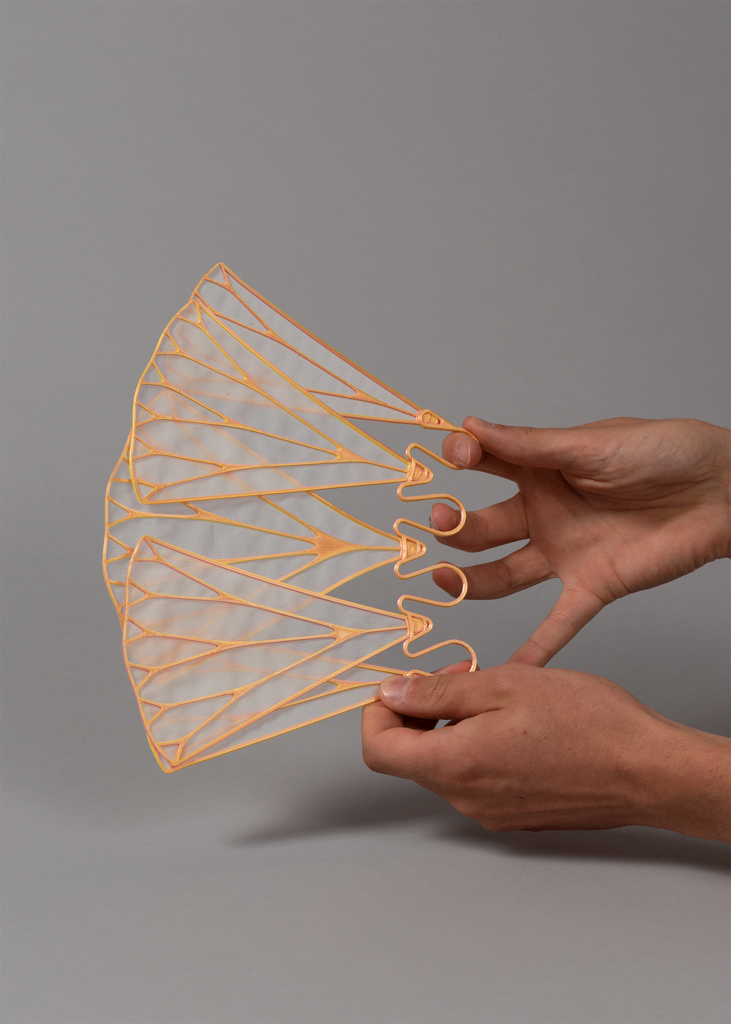 L’éventail Métamorphose est le fruit d’un travail autour de la souplesse et de la technique d’impression 3D par dépôt de fil.
